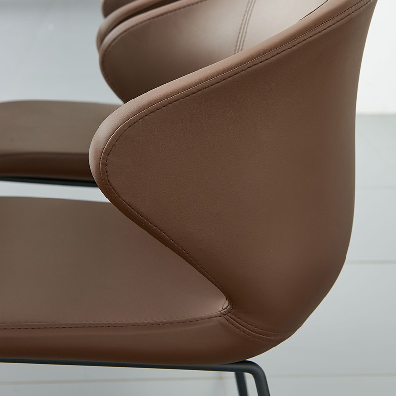The Luna Ergonomic Leather Swivel Office Chair blends sculptural artistry with professional functionality, featuring a distinctive curved shell backrest designed for all-day support. Upholstered in premium leather with precision perimeter stitching, its elegant wing-like silhouette rests on a stable, four-star matte black base that allows for a smooth swivel motion. This minimalist piece elevates any contemporary workspace or boardroom, offering a refined balance of comfort and sophisticated modern design.